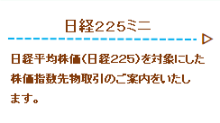主な取扱商品 ▶▶国内株式 ▶▶日経225ミニ ▶▶投資信託 上場株式取引 日経225先物取引 投資信託 上場商品先物取引 東京証券取引所 大阪証券取引所 上場株式取引 日経225先物取引 投資信託 上場商品先物取引